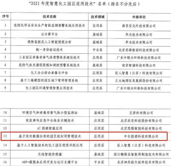 近日,石化联合会园区委公示了2021年度智慧化工园区适用技术名单。经专家综合评议,共28个技术入选,包含基础层、应用层、平台层三个方向。其中六六云链科技(宁波)有限公司(以下简称“六六云链科技”) 基于实时数据分析的园区软封闭管理技术成功上榜十三个应用层示范技术之一。