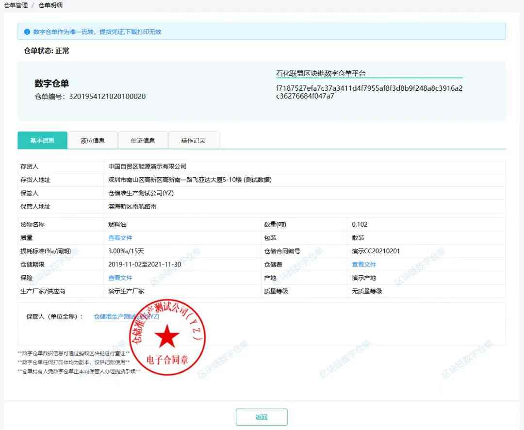 所以说,在库货物数字仓单化后,极小可能会影响到仓库其他存货人的利益。不会因共用储罐、查封一个储罐从而影响其他同储罐存货人的情况。这也是数字仓单带给仓库的一个便利之处。