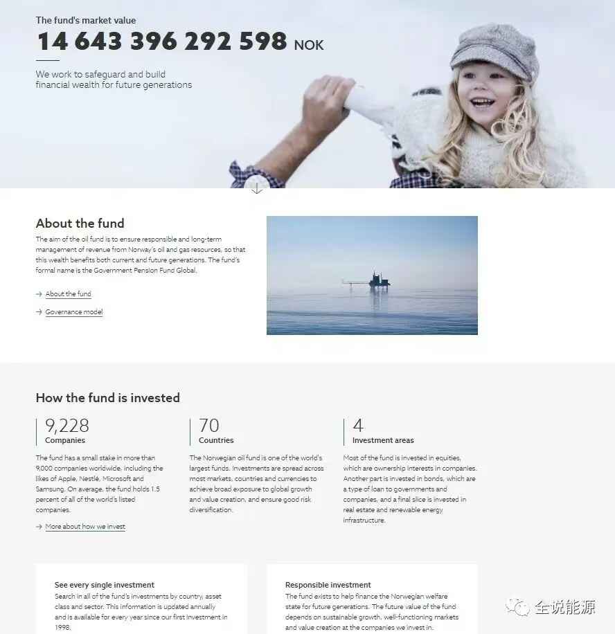世界经济和金融领域,有一家非常出名的挪威机构,其官称为挪威全球政府养老基金(Government Pension Fund Global),行业简称其为挪威石油基金,是全球最大的主权财富基金。2022年12月31日,挪威石油基金的总额约为1.26万亿美元。根据管理这个基金的挪威银行投资管理公司官网称,北海石油大发现后,1990年挪威决定成立全球政府养老基金,设立基金的目的是为了保护经济不受石油收入起伏的影响,作为财政储备和长期储蓄的计划,为挪威今世后代的国民都能从石油财富中受益。截止本文刊发时,挪威石油基金共在全球70个国家,投资了9228家公司,约占世界上市公司市值的1.5%。
