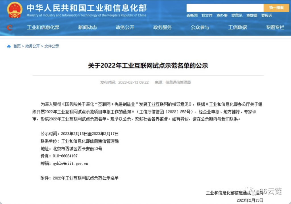 66云链入选!工信部2022年工业互联网试点示范名单公示