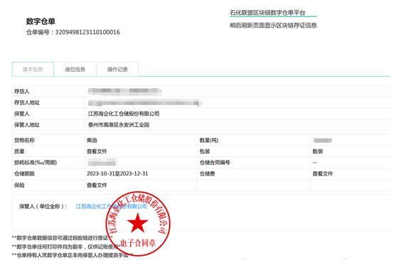 江苏海企仓储首笔数字仓单质押融资业务成功落地