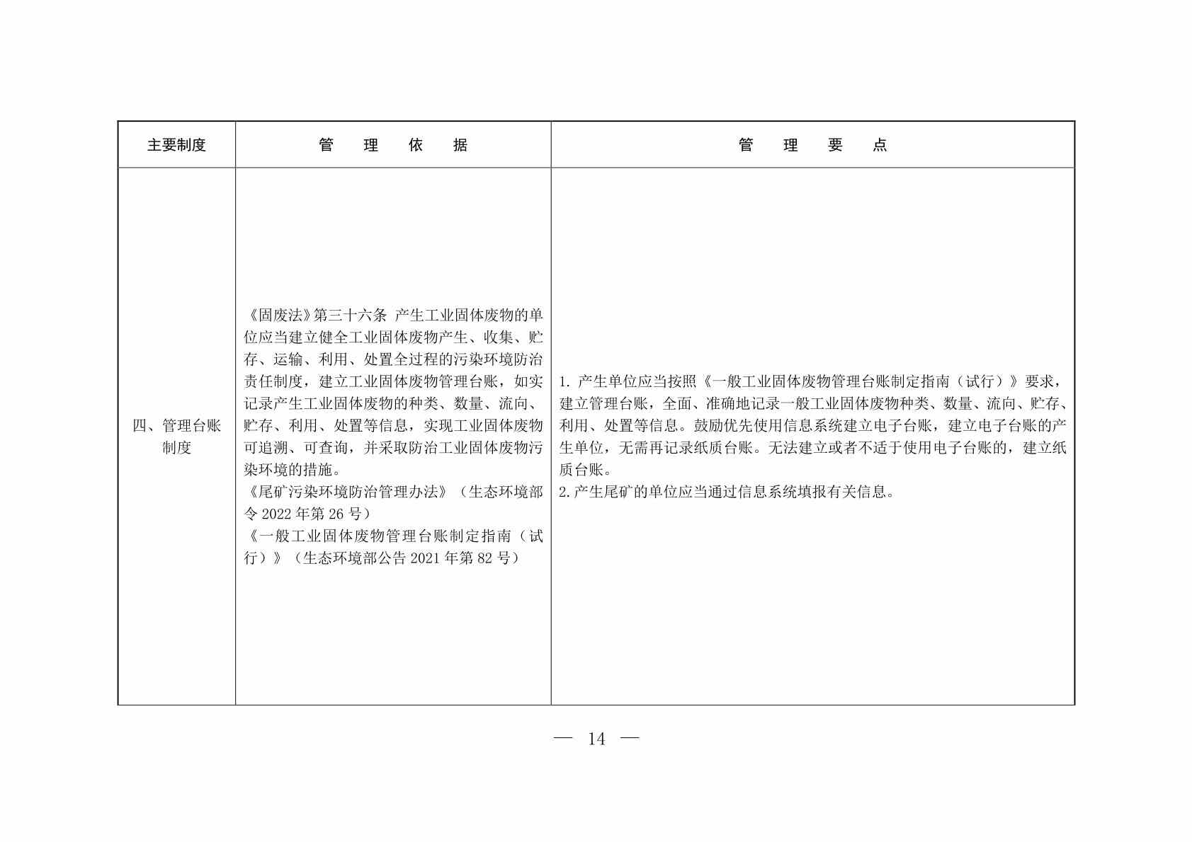 1.产生单位应当按照《一般工业固体废物管理台账制定指南(试行)》要求,建立管理台账,全面、准确地记录一般工业固体废物种类、数量、流向、贮存、利用、处置等信息。鼓励优先使用信息系统建立电子台账,建立电子台账的产生单位,无需再记录纸质台账。无法建立或者不适于使用电子台账的,建立纸质台账。