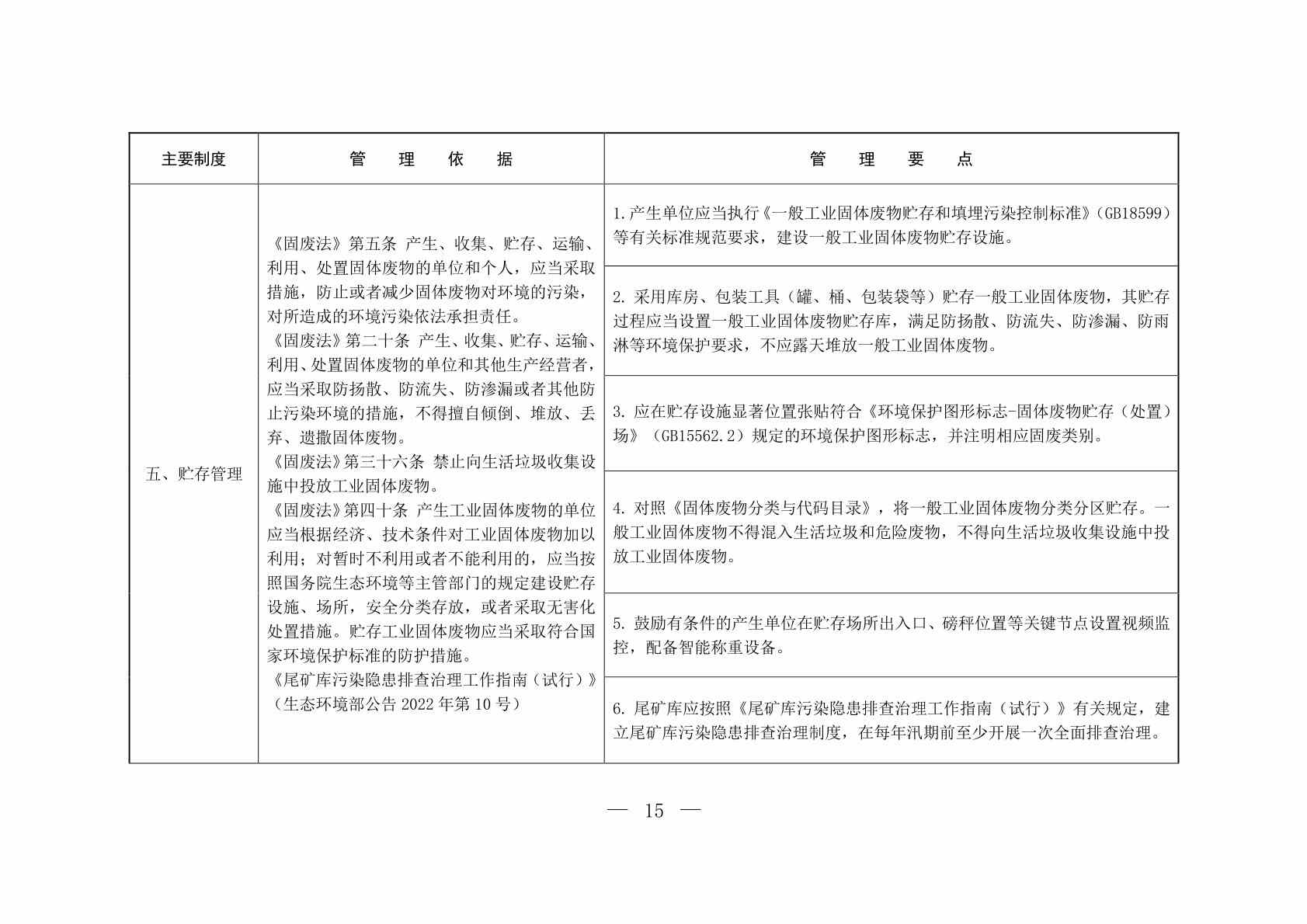 4.对照《固体废物分类与代码目录》,将一般工业固体废物分类分区贮存。一般工业固体废物不得混入生活垃圾和危险废物,不得向生活垃圾收集设施中投放工业固体废物。