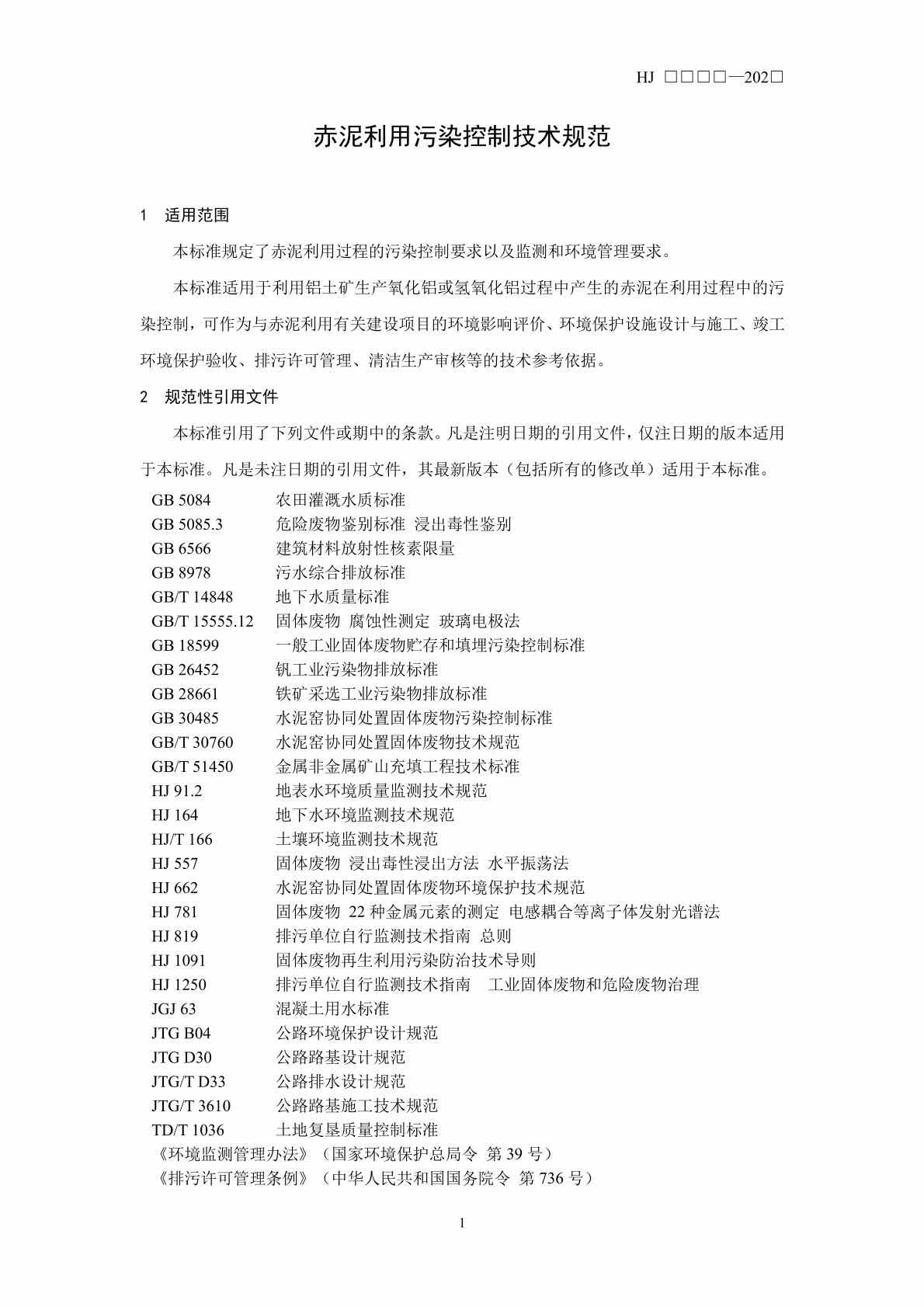 6.2 赤泥预处理后的物料用于 6.1 用途时,按照 HJ 557 制备的浸出液中钒不超过 0.5mg/l,钼不超过 GB/T 14848 的 IV 类限值,总硒、总铬、六价铬、总砷、氟化物、总汞浓度不超过 GB 8978 最高允许排放浓度(第二类污染物最高允许排放浓度按照一级标准执行),pH不超过 10,碱含量不超过 JGJ 63 混凝土拌合用水水质要求。