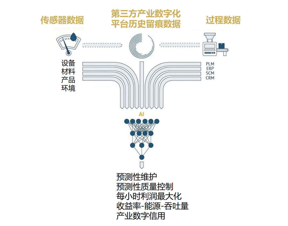 通过对这些数据的汇总建模,不仅可以实现生产优化、预测性维护,还可以形成覆盖“采购合同→原料入厂 →生产→产品交付、运输出厂→ 回款”的完整闭环,实现“钱—物”的交叉验证,这就是产业数字信用的来源。