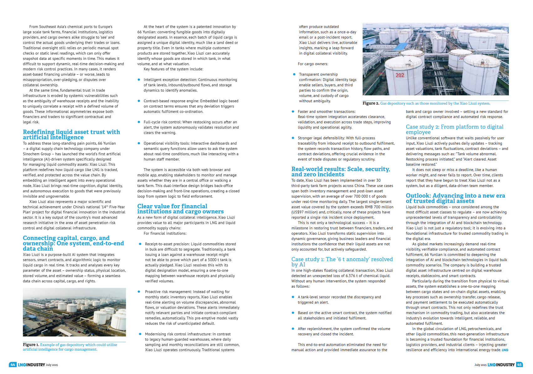 在其2025年7月刊中,杂志以《The Role of Artificial Intelligence in LNG Management》(点击文末“阅读原文”,获取原报道)为题,介绍了“小六子”如何通过AI技术打通液体货物资产监管、确权、履约和融资的全流程。