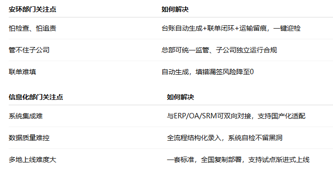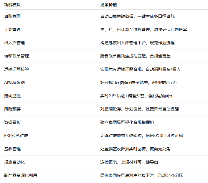 这些都是真实发生在产废企业安环部日常管理中的困境。面对持续加码的环保监管,企业如果还依赖表格+微信+人工处理,将极易在“回头看”中暴露漏洞。