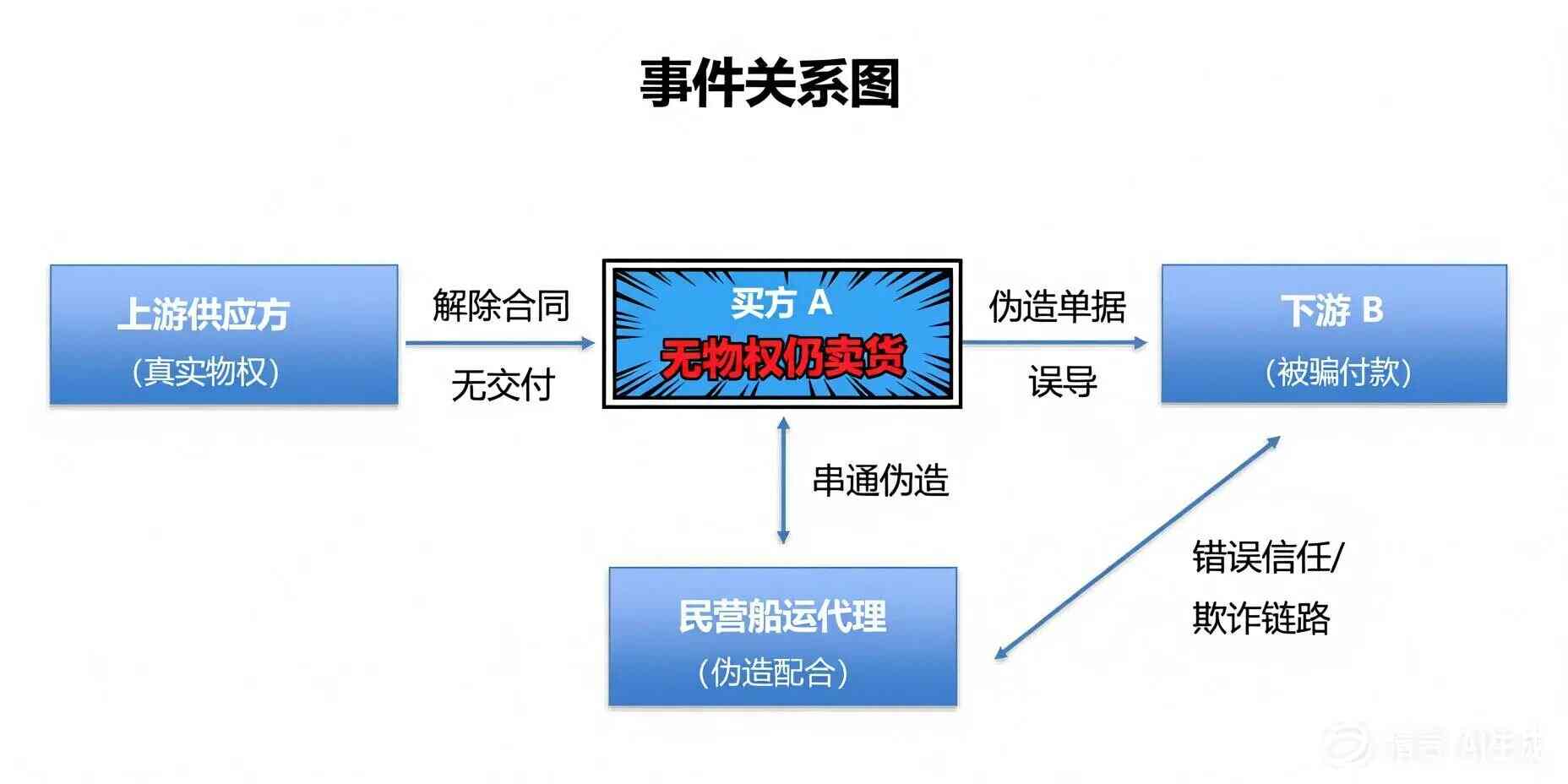 直到后面才发现:整条链路里,真正握着物权的是上游;买方 A 根本没有交付能力。