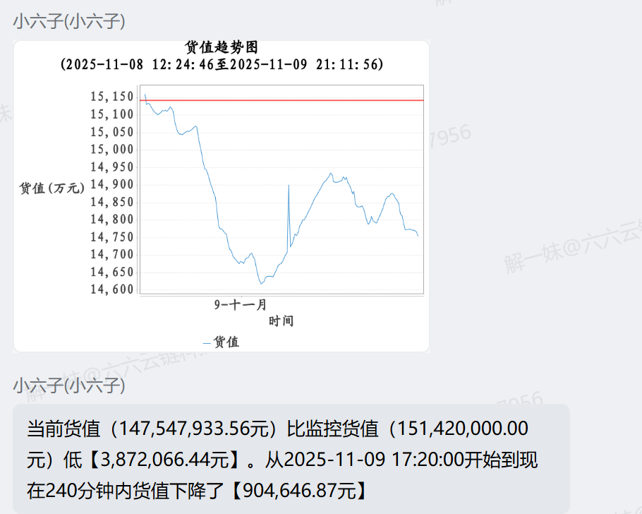2.当在押货值跌破合同约定的监管线时,“小六子”会在 1 分钟内发预警。