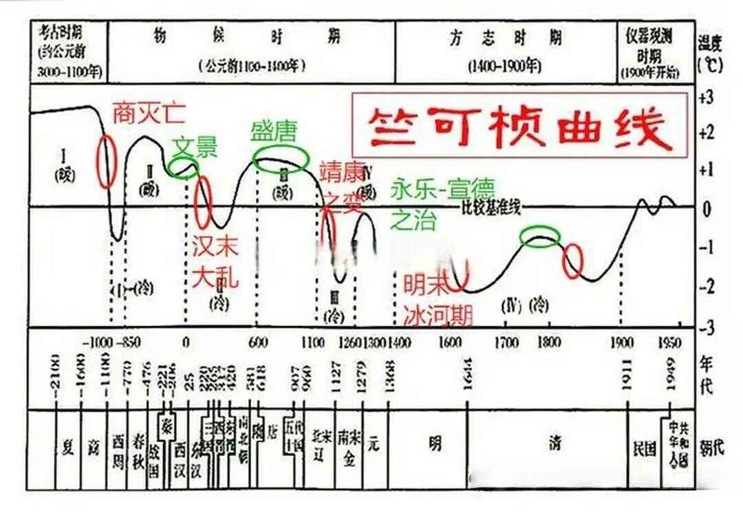 竺可桢线,研究中国五千年气候变迁规律,划分南北气候差异,告诉我们冷暖如何影响生产生活,为农业区划和水利评估提供参考。