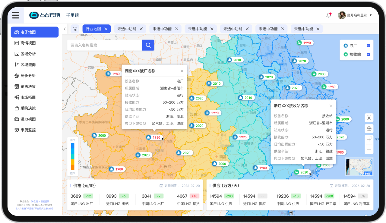 整合LNG进口和终端消费全链路数据,用数字地图呈现。无需繁琐报表,一键掌握全国供应和消费格局,让决策更高效、更精准。